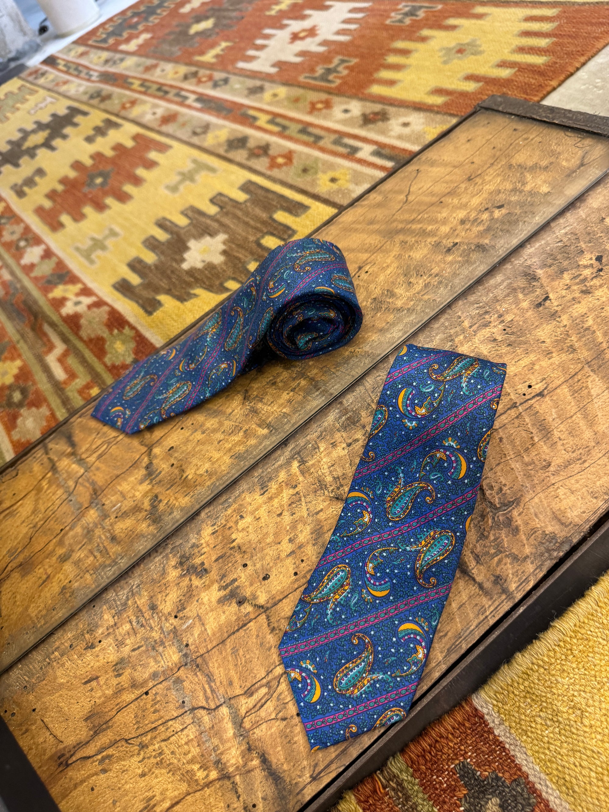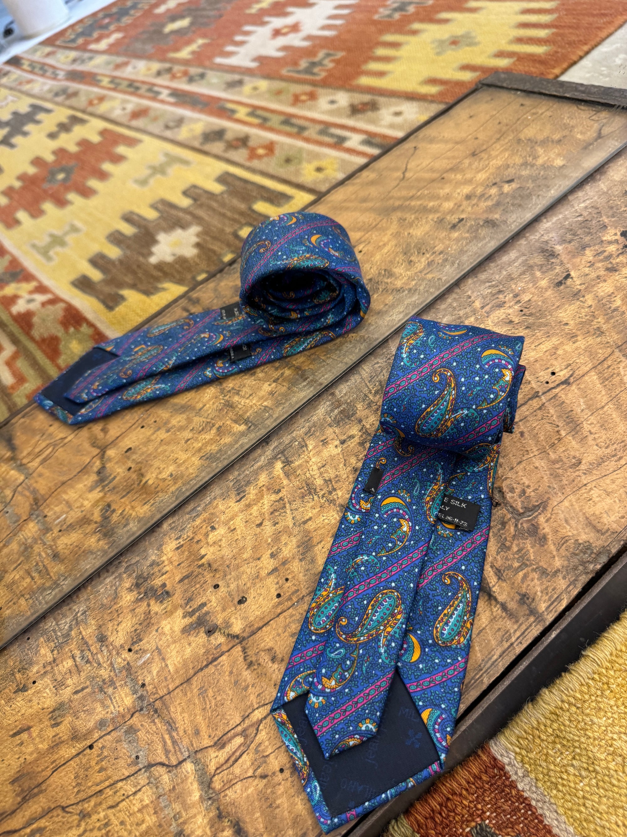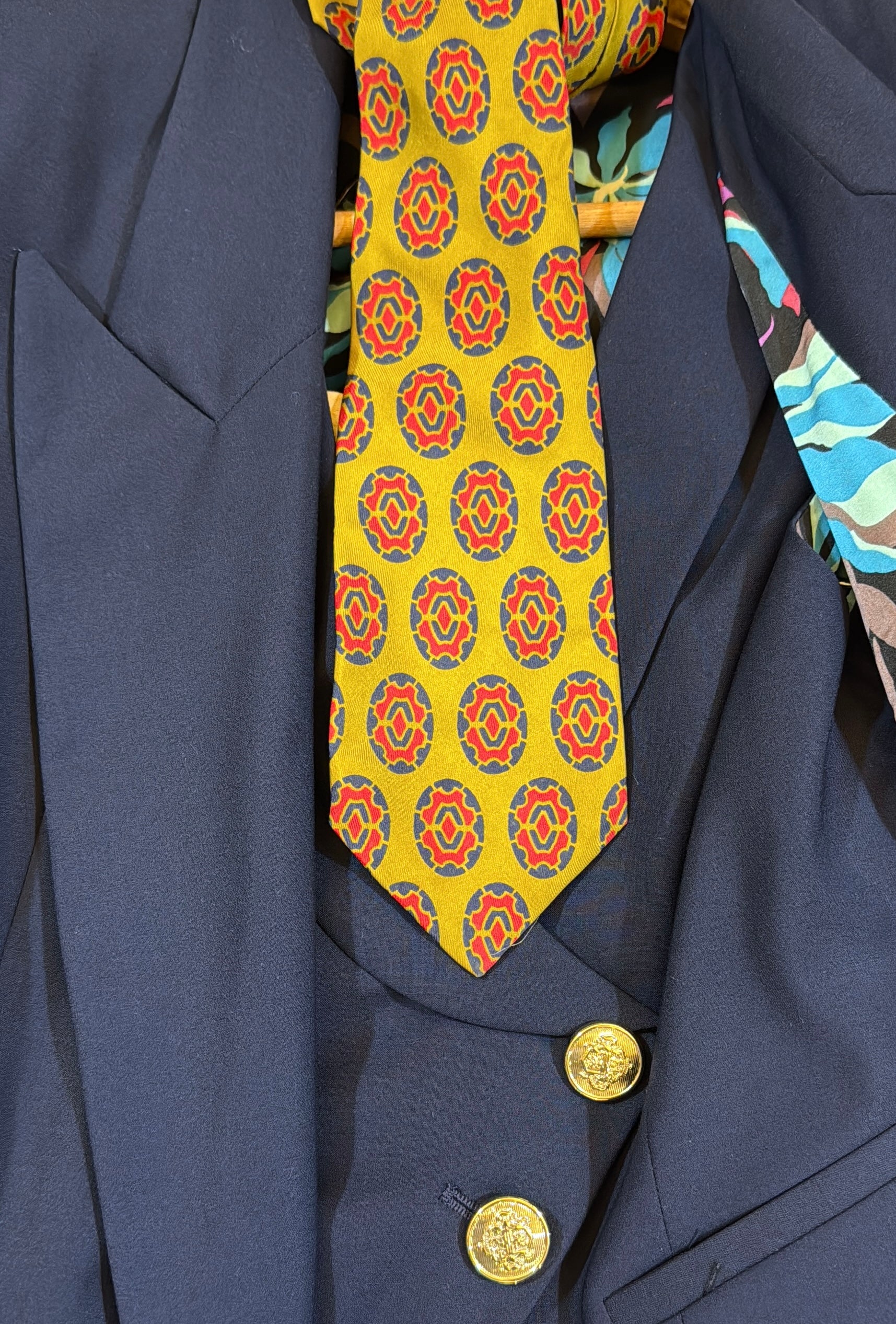 Cravatta ocra blue e rossa
